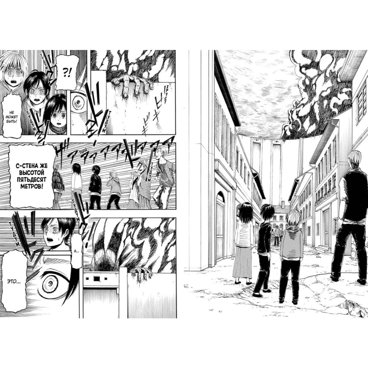 Первая книга культовой манги Хадзимэ Исаямы знакомит с миром, где человечество выживает за высокими стенами, защищаясь от гигантских титанов. История начинается с трагического вторжения, которое навсегда меняет судьбу юного Эрена и запускает цепь жестоких, напряжённых событий.