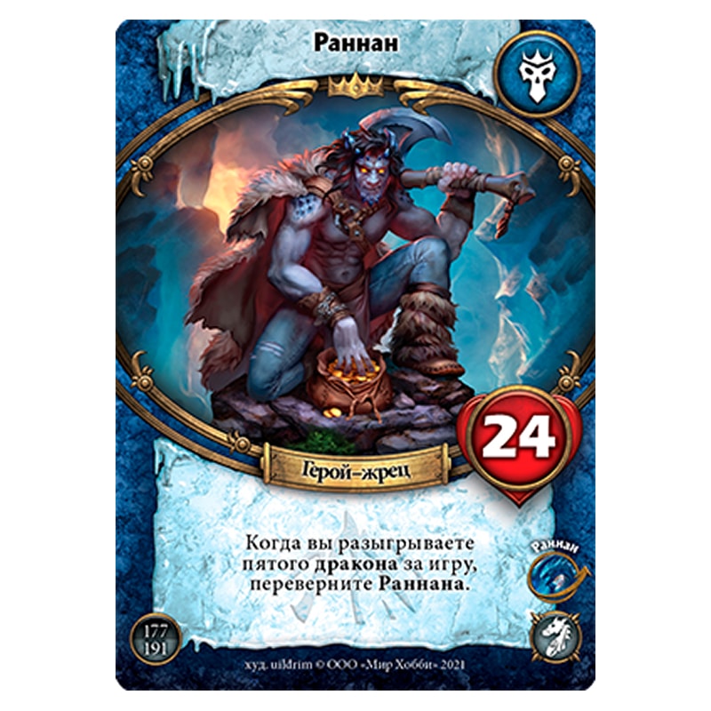 Раннан — жестокий воин и служитель драконьих сил, чья мощь напрямую связана с этими древними существами. Его стратегия строится вокруг усиления армии за счёт драконов: чем больше таких существ на поле, тем сильнее давление на противника. Колода сочетает агрессию и постепенное наращивание силы, позволяя контролировать ход партии и доводить её до победы мощными атаками.