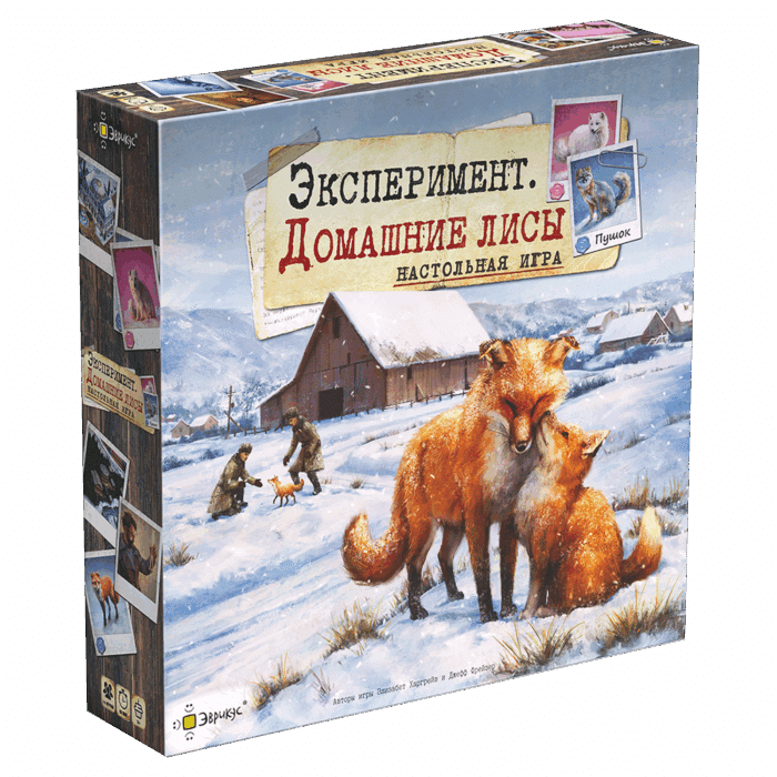 Эксперимент. Домашние лисы — карточная игра о научном опыте по одомашниванию лис. Игроки развивают свои линии животных, выбирая между дружелюбием, агрессией и хитростью, чтобы получить больше очков и преимуществ.