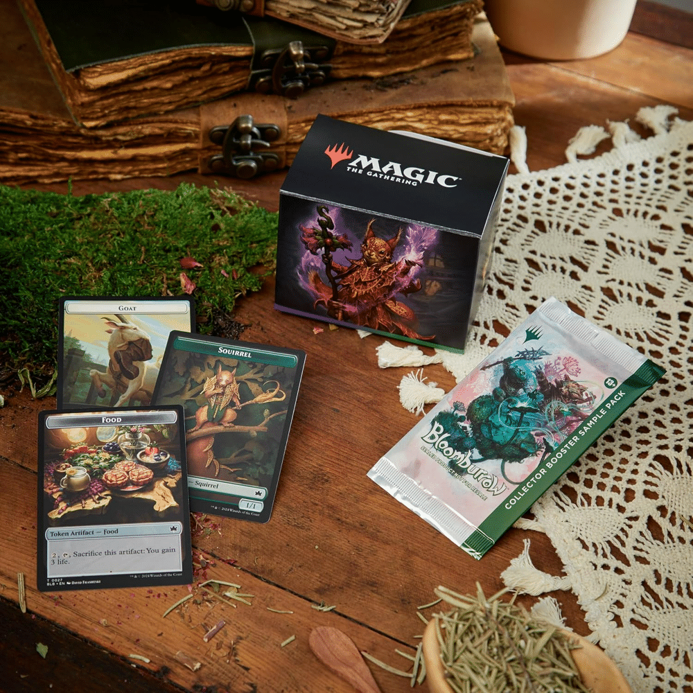 Кроме самой колоды, вы получаете дополнительный мини-бустер — Collector Booster Sample Pack, который даёт шанс на редкие и альтернативные карты из Bloomburrow. Также внутри есть токены, аксессуары и коробка, чтобы играть и хранить колоду сразу после распаковки.