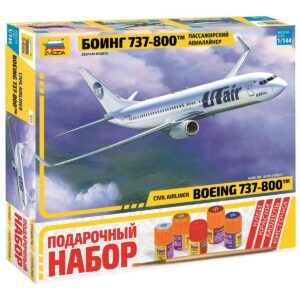 Боинг 737-800 эксплуатируется в авиакомпаниях с апреля 1998 года и продолжает производиться серийно. Он является самой популярной моделью среди всех самолетов поколения NG. Набор деталей для сборки одной модели самолета изготовлен из пластмассы и предназначен для сборки с использованием специального клея, выпускаемого предприятием «Звезда». Краски для окраски модели продаются отдельно от набора.