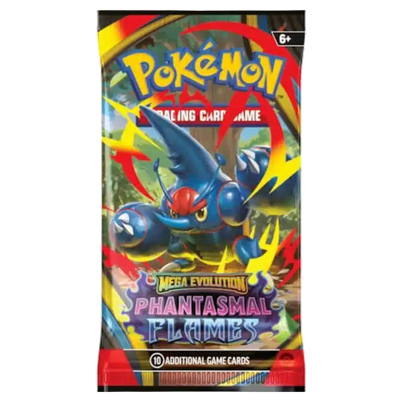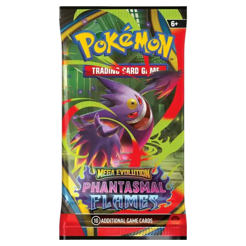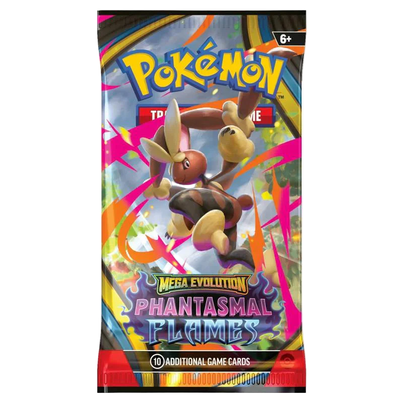 Pokémon TCG: ME2 – Phantasmal Flames Booster приглашает в мир фантомного пламени, где огонь и тьма переплетаются в новых Mega-эволюциях. Этот сет делает упор на мощные атаки, эффектные комбинации и выразительный визуальный стиль, подчёркивающий возвращение Mega Pokémon в игру.