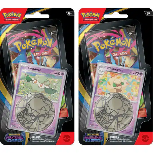 Pokémon TCG: ME2 – Phantasmal Flames Checklane Blister предлагает прикоснуться к атмосфере фантомного пламени в удобном и доступном формате. Огненная энергия и призрачная тематика сета подчёркивают возвращение Mega Pokémon, делая каждое открытие напряжённым и захватывающим.