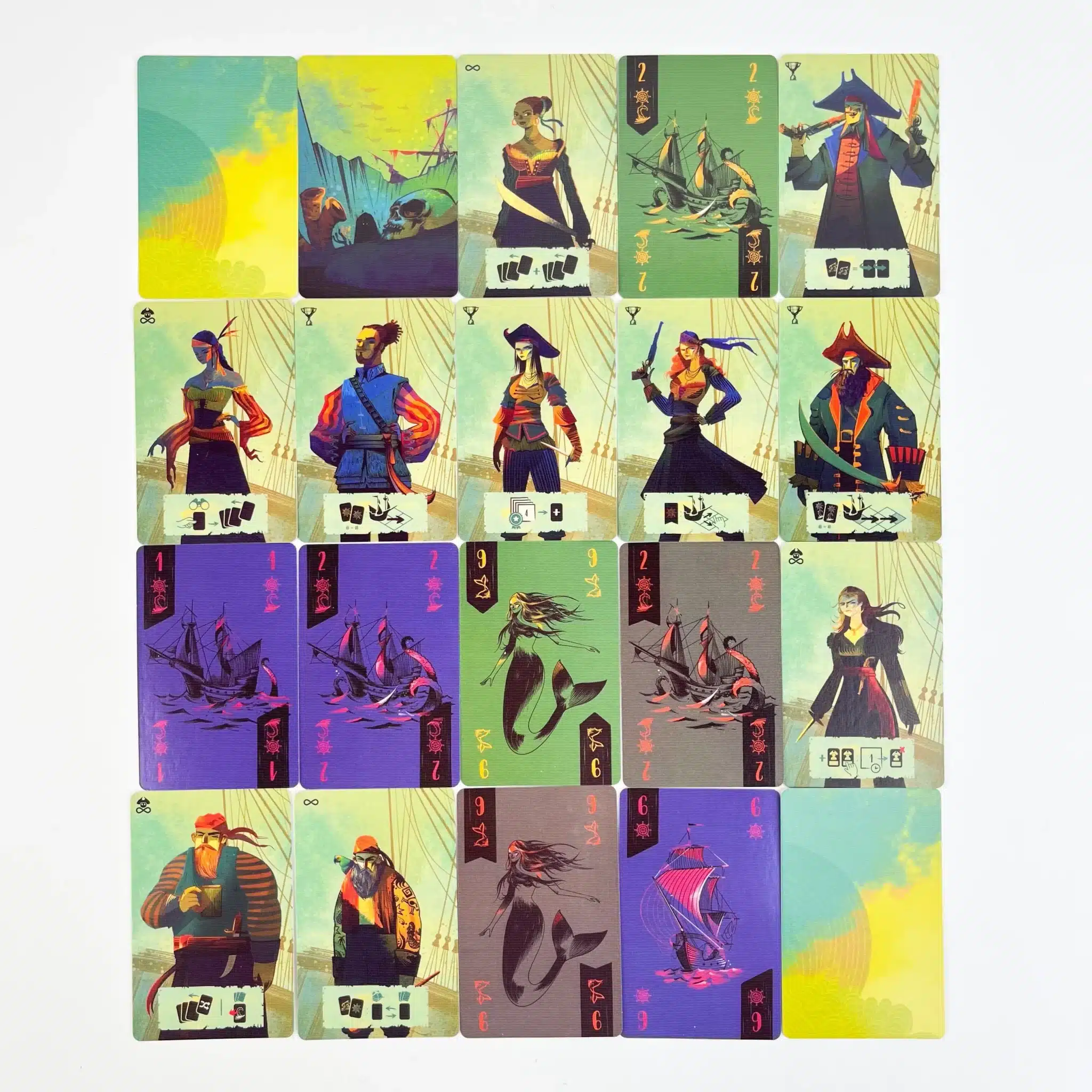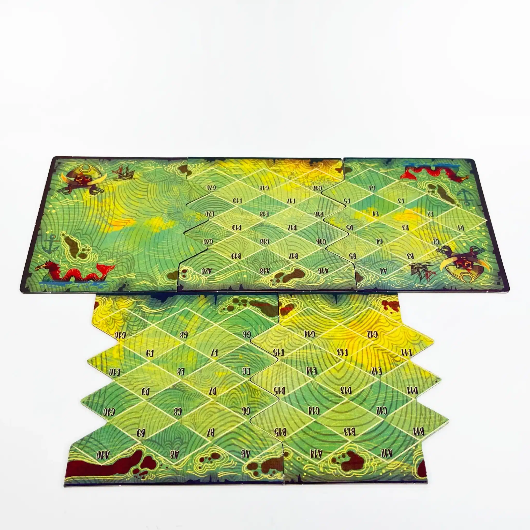 Каждый раунд игроки выкладывают карты, определяя, кто берёт взятку и какие действия активируются: движение корабля, поворот, использование парусов, атаку морского монстра или защиту от урона. Доска состоит из модульных тайлов, а маршрут каждый раз меняется, что делает каждую партию непредсказуемой.