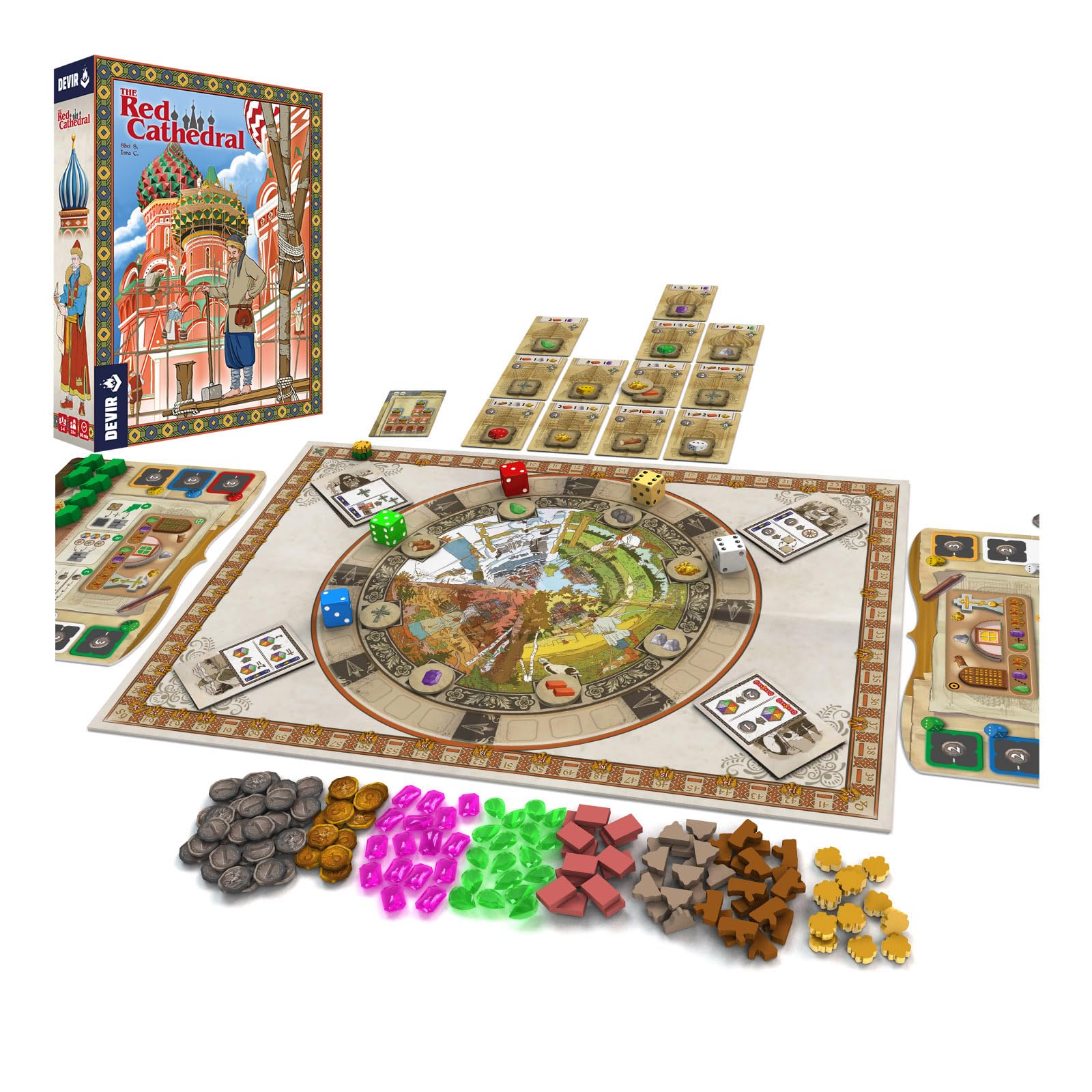 The Red Cathedral — стратегическая евро-игра, в которой игроки берут на себя роль строительных команд, работающих над возведением Собора Василия Блаженного. Все игроки совместно участвуют в строительстве здания, однако только один сможет получить наибольшее признание и благосклонность царя.