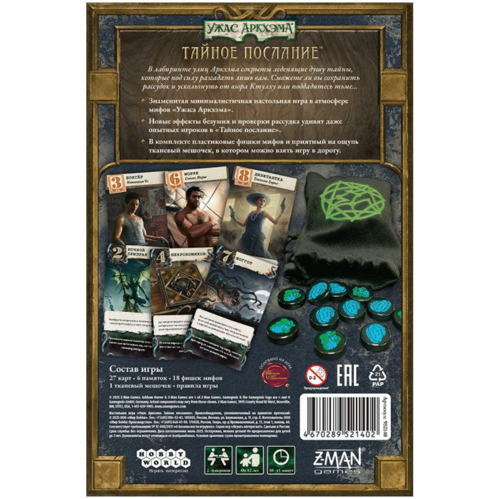 «Ужас Аркхэма: Тайное послание» — компактная мистическая игра по миру Лавкрафта, где каждое действие связано с риском, скрытыми силами и проверкой рассудка.