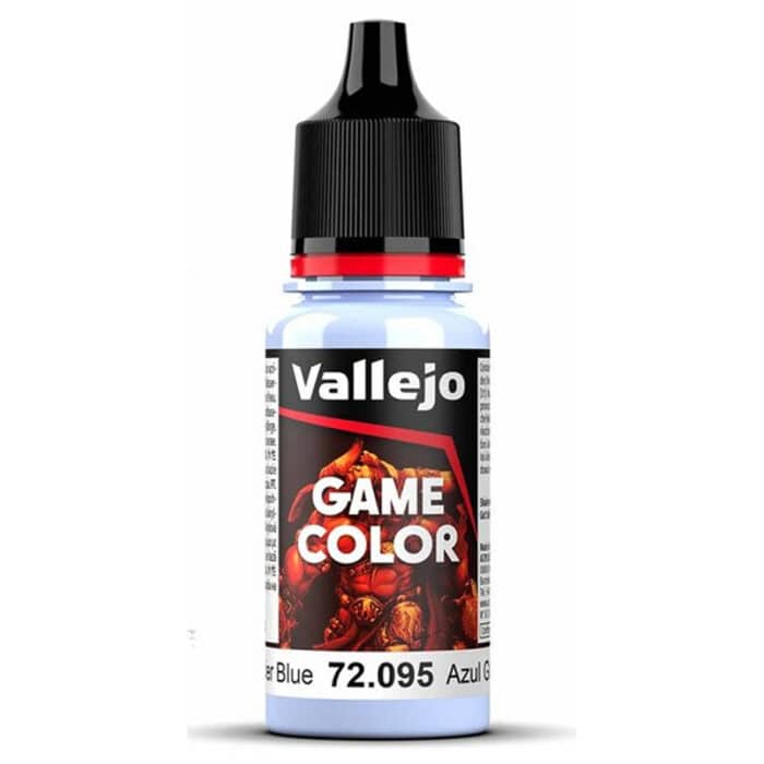 Vallejo Game Color Glacier Blue — акриловая краска для окраски миниатюр и масштабных моделей. Оттенок Glacier Blue представляет собой холодный светло-голубой цвет, который отлично подходит для ледяных эффектов, магических элементов, деталей брони, одежды и фантазийных существ.