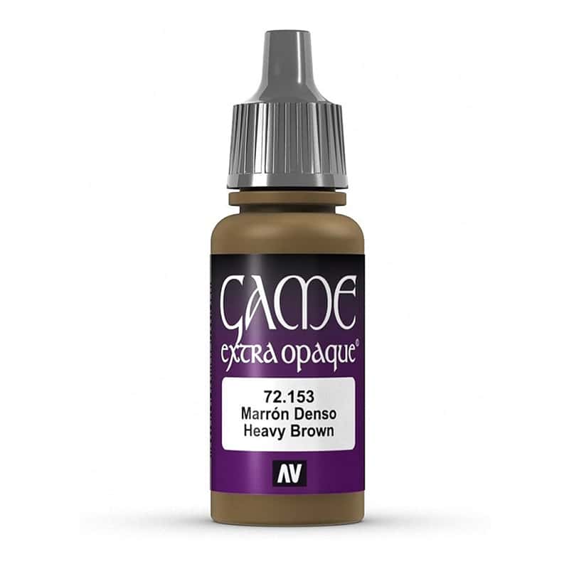 Vallejo Game Color Heavy Brown — акриловая краска (серия Extra Opaque) для кистевой и аэрографной окраски миниатюр и моделей, разработанная для получения насыщенного тёмно‑коричневого цвета с отличной матовой укрывистостью. Это плотный и непрозрачный тон, который отлично подходит для базовых слоёв, деревянных элементов, кожи, земли и естественных текстур на фигурах и моделях.