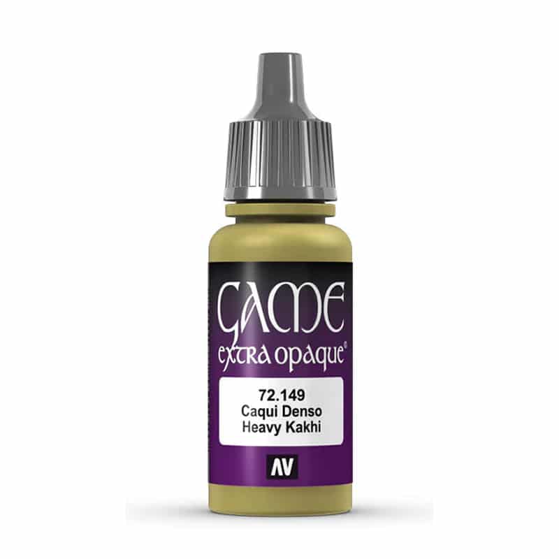 Vallejo Game Color Heavy Khaki — акриловая краска (серия Extra Opaque) для кистевой и аэрографной окраски миниатюр и моделей, разработанная для получения насыщенного, естественного цвета в стиле классического хаки. Оттенок Heavy Khaki представляет собой тёплый, слегка желтовато‑зелёный тон, который отлично подходит для базовых слоёв одежды, военной экипировки, полевых элементов, щитов и декоративных деталей на фантастических и исторических моделях.