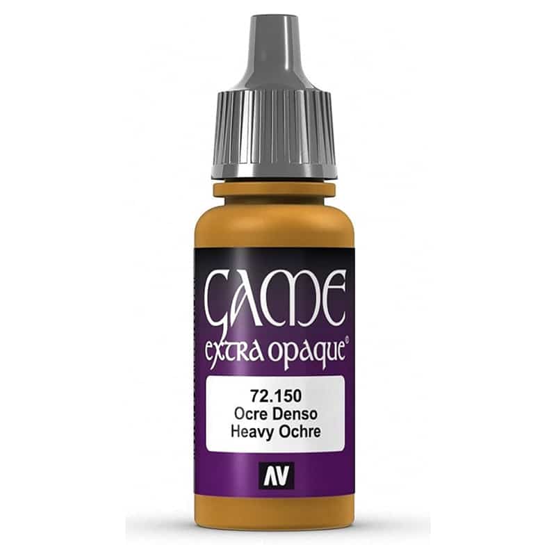 Vallejo Game Color Heavy Ochre — акриловая краска (серия Extra Opaque) для кистевой и аэрографной окраски миниатюр и моделей, разработанная для получения насыщенного тёплого охристого оттенка с отличной матовой укрывистостью. Оттенок Heavy Ochre представляет собой насыщенный, глубокий жёлто‑коричневый тон, который прекрасно подходит для базовых слоёв, элементов кожи, ткани, деревянных поверхностей, земли и декоративных деталей.