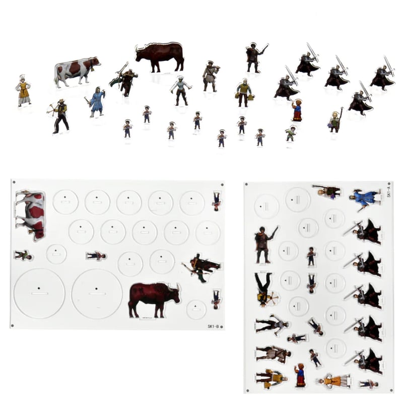 Главное преимущество набора — большое количество готовых персонажей с уникальными именами и образами, которые можно сразу использовать в игре для оживления сюжета без подготовки и покраски. Компактный формат 2D-миниатюр делает их удобными для хранения и транспортировки, а также позволяет быстро расставлять персонажей на карте боя.