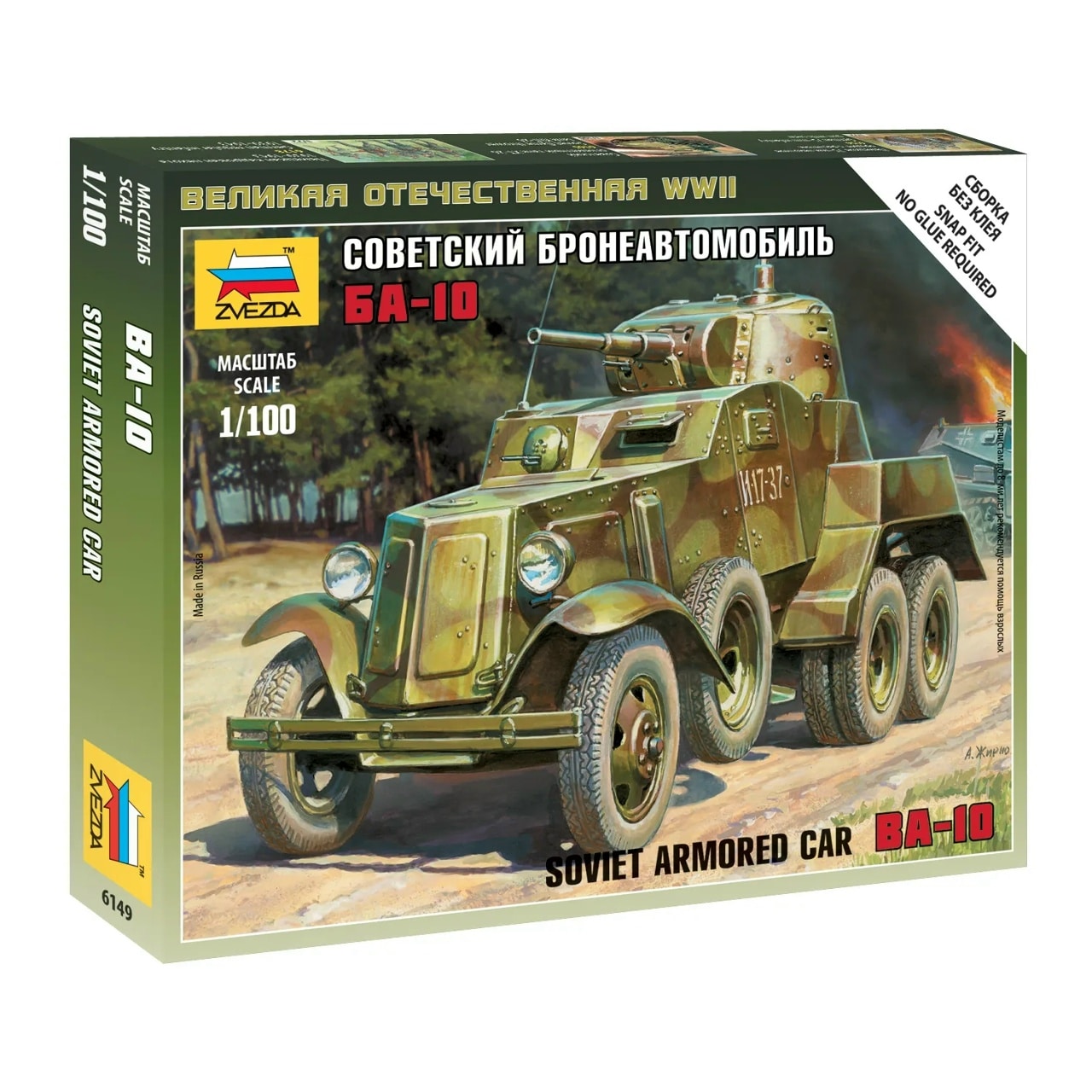 Сборная модель советского бронеавтомобиля БА‑10 от компании Zvezda — пластиковый набор для самостоятельной сборки уменьшенной копии одного из первых советских бронеавтомобилей с колесной броней. БА‑10 создавался на базе трёхосного грузовика ГАЗ‑AAA и стоял на вооружении Красной армии с 1938 года, принимая участие в боевых действиях на ранних этапах Второй мировой войны.