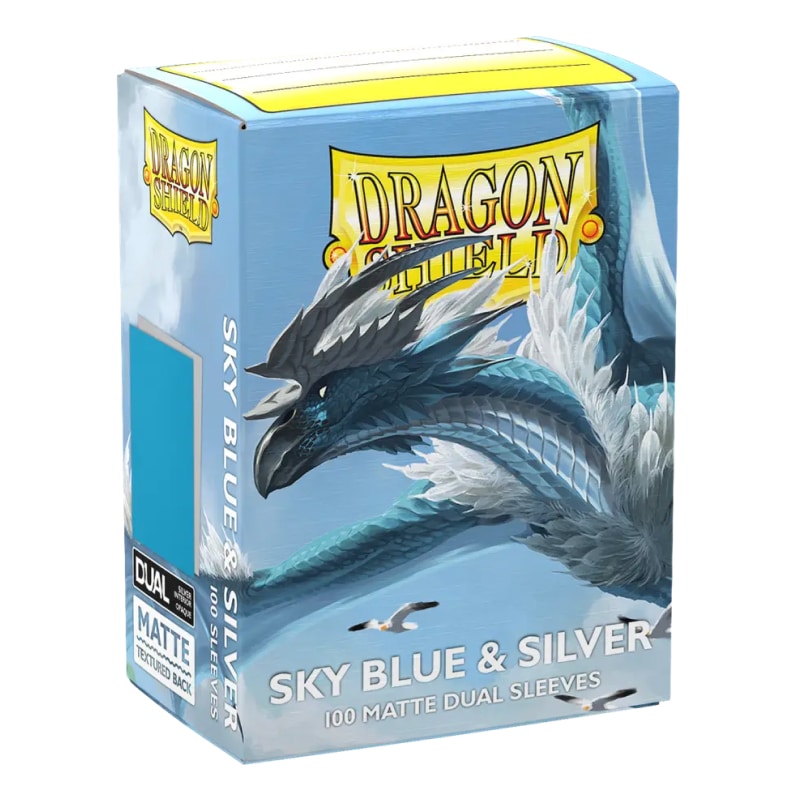 Dragon Shield Matte Dual Sky Blue & Silver — премиальные протекторы с матовой текстурой и двойной конструкцией. Небесно-голубая спинка и серебряная внутренняя подложка обеспечивают стильный внешний вид и полную непрозрачность. Отлично подходят для турнирной игры и защиты карт.