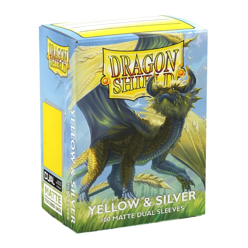 Dragon Shield Matte Dual Yellow & Silver — премиальные протекторы с матовой текстурой и двойной конструкцией. Жёлтая спинка и серебряная внутренняя подложка обеспечивают стильный внешний вид и полную непрозрачность. Отлично подходят для турнирной игры и защиты карт.