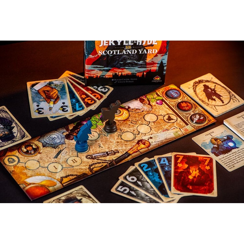 Джекил и Хайд против Скотланд‑Ярда — это кооперативная карточная игра для двух игроков, вдохновлённая классической готической историей о докторе Джекиле и мистере Хайде. Игроки работают вместе, балансируя между двумя ипостасями личности, чтобы опередить расследование полиции Скотланд‑Ярда и пройти все сюжетные главы.