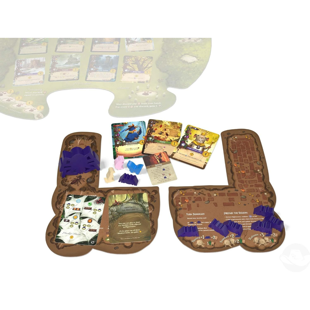 Everdell: Mistwood — это отдельная игра, не требующая базовой версии Everdell. Действие разворачивается в загадочном Туманном лесу, где привычное развитие города дополняется повышенным уровнем напряжения, взаимодействия и стратегического давления.