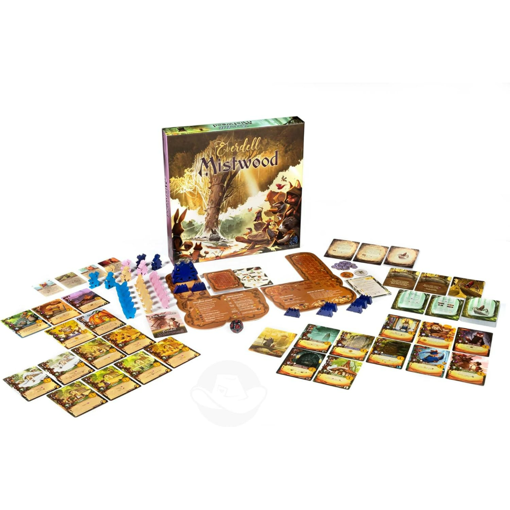 Everdell: Mistwood — самостоятельная настольная игра во вселенной Everdell, в которой игроки сталкиваются с таинственным лесом, новыми угрозами и усиленным противостоянием, включая режим против опасного автоматического соперника.