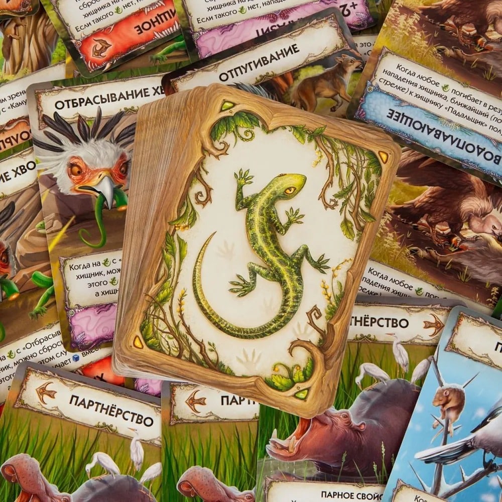 Каждый ход игроки разыгрывают карты, добавляя своим существам признаки (свойства) — например, хищничество, защиту или способность к эффективному питанию. Эти свойства определяют, как виды взаимодействуют друг с другом и с окружающей средой. Ключевая задача — накормить своих животных в условиях ограниченных ресурсов. Игроки конкурируют за пищу, могут атаковать других существ или защищаться с помощью специальных способностей. Выживают и приносят очки только те виды, которые смогли успешно адаптироваться.