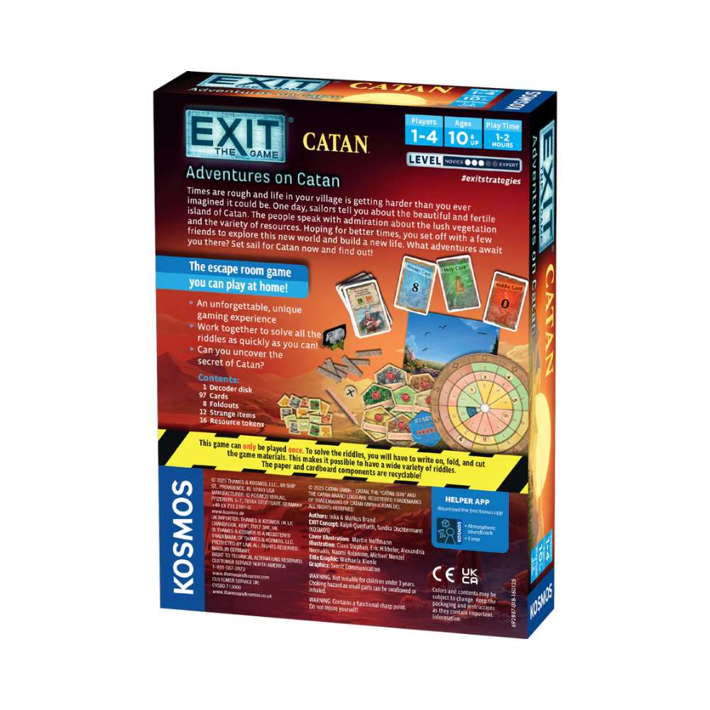 В EXIT: Adventures on Catan вы попадаете в атмосферный квест, основанный на мире Катана. В процессе игры вам предстоит исследовать остров, взаимодействовать с компонентами, расшифровывать подсказки и решать логические задачи, чтобы продвинуться вперёд. Используя кодовое колесо, специальные карты и разнообразные элементы, вы шаг за шагом раскрываете тайну приключения. Игра рассчитана на одно прохождение, потому что некоторые материалы нужно будет сгибать, помечать или разрывать, что делает каждый опыт уникальным.