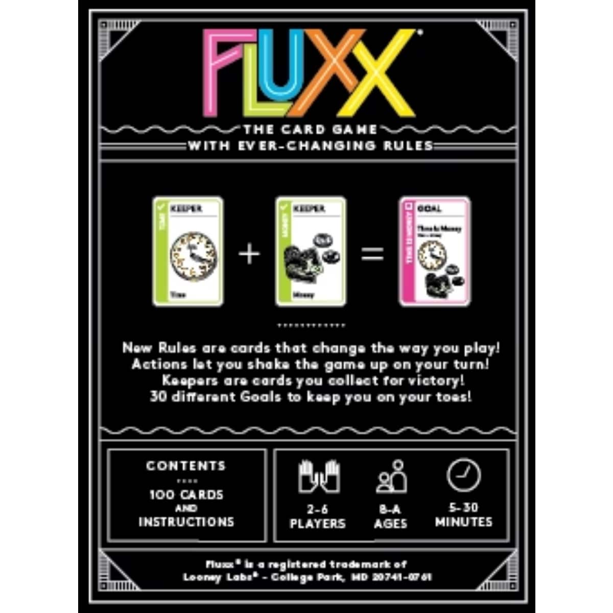 Fluxx — это карточная игра с постоянно меняющимися правилами, где цель, способы действий и даже условия победы могут измениться в любой момент. Версия 5.0 — самая отточенная и удобная классическая редакция игры.