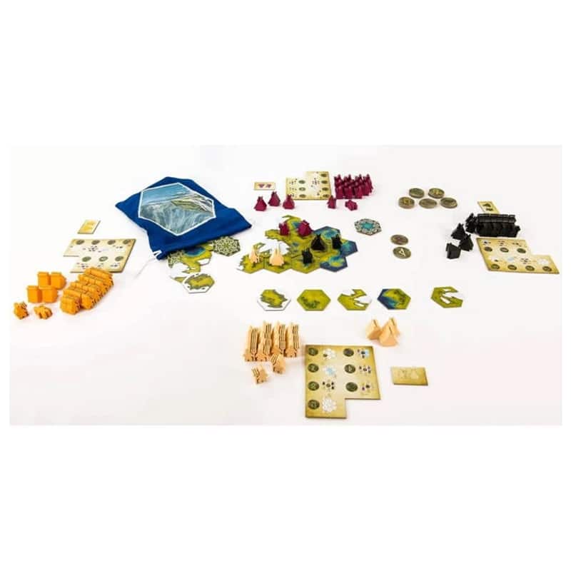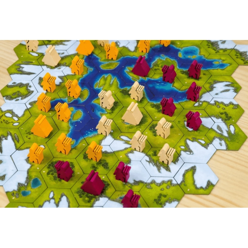Партия делится на две фазы. В первой фазе игроки по очереди выкладывают гексовые тайлы, формируя карту из гор, равнин и воды. При этом важно учитывать типы местности — тайлы должны правильно стыковаться, создавая единый ландшафт.