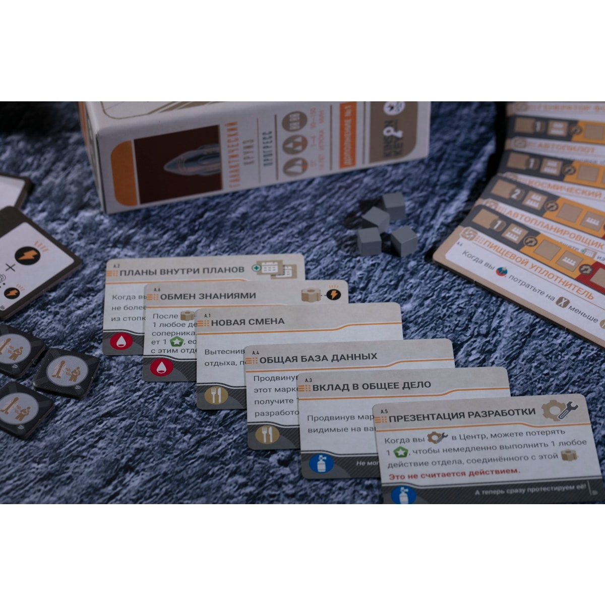 «Галактический круиз. Прогресс» — это модульное дополнение к основной игре Galactic Cruise (2025), состоящее из трёх взаимодополняемых модулей, которые добавляют новые механики и возможности, расширяя базовый опыт стратегического управления космической туристической компанией без радикального изменения core-геймплея. В дополнении вы найдёте новые карты улучшений, жетоны специалистов и технологий, которые можно использовать по отдельности или в сочетании с другими модулями (например, «Комфорт»), что увеличивает вариативность партий и стратегический диапазон решений: от усиления вашей экономической машины до расширения возможностей по развитию инфраструктуры, при этом дополнение органично вписывается в уже существующие механики размещения рабочих и набора очков компании. Это делает каждую игру более глубокой и насыщенной, предоставляя игрокам больше путей к победе и дополнительные варианты развития компаний, усиливая взаимодействие между механиками строительства кораблей, найма персонала и технологического прогресса, сохраняя при этом фокус на тематике космических путешествий и экономическом соревновании за звание лучшего генерального директора космической круизной корпорации.