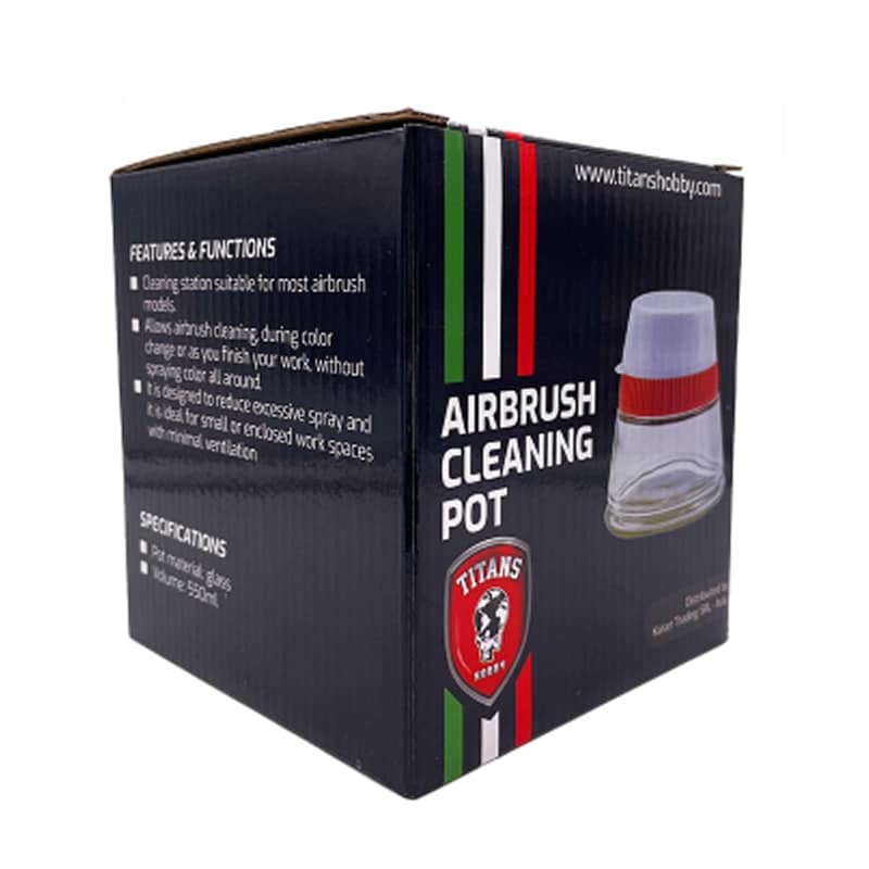 Cleaning Pot от TITANS HOBBY — удобный контейнер для безопасной очистки аэрографов. Позволяет работать без разбрызгивания краски и быстро промывать инструмент после использования.