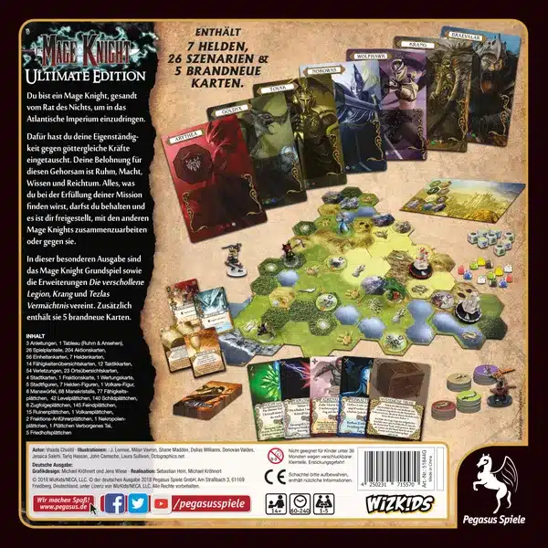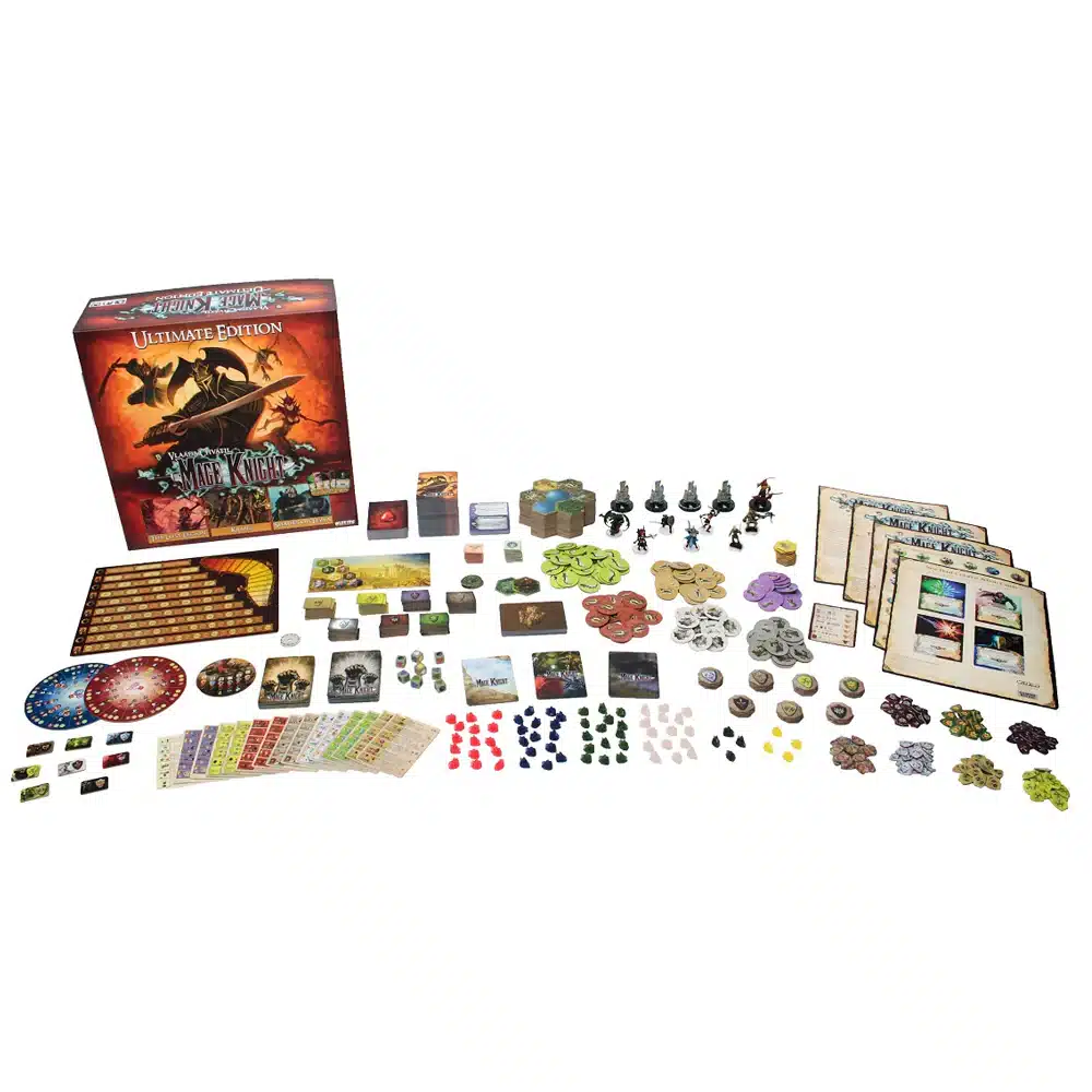 Mage Knight: Ultimate Edition — это комплексное издание культовой настольной игры, объединяющее оригинальную базовую игру и все три крупных дополнения — The Lost Legion, Shades of Tezla и Krang Character Expansion — в одной коробке, с полностью интегрированными правилами, новыми картами и переработанными миниатюрами.