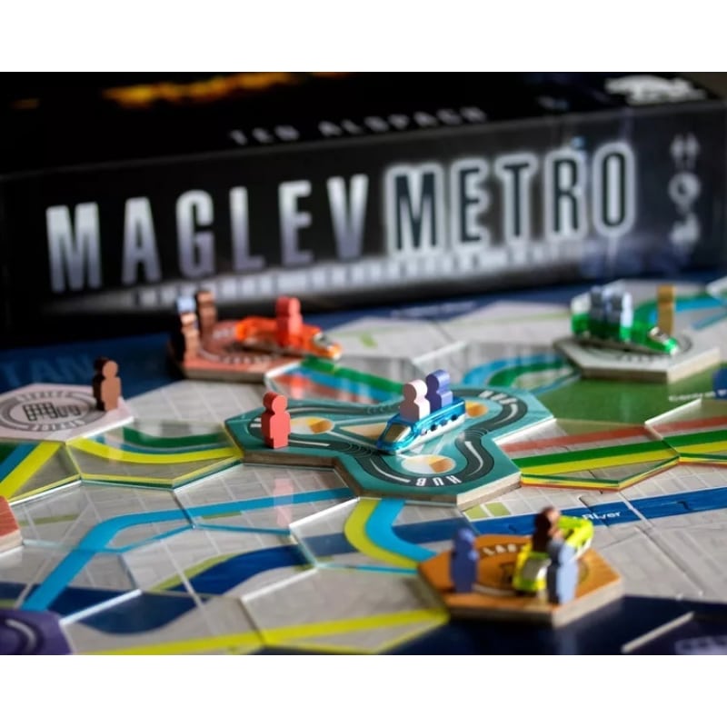Маглев Метро — это современная стратегическая настольная игра про строительство и развитие городской сети транспорта с использованием технологии магнитной левитации. Игроки берут на себя роль инженеров‑проектировщиков, которые создают эффективные маршруты метро для перевозки пассажиров и роботов, стараясь получить как можно больше очков за доставку до пунктов назначения быстрее соперников.