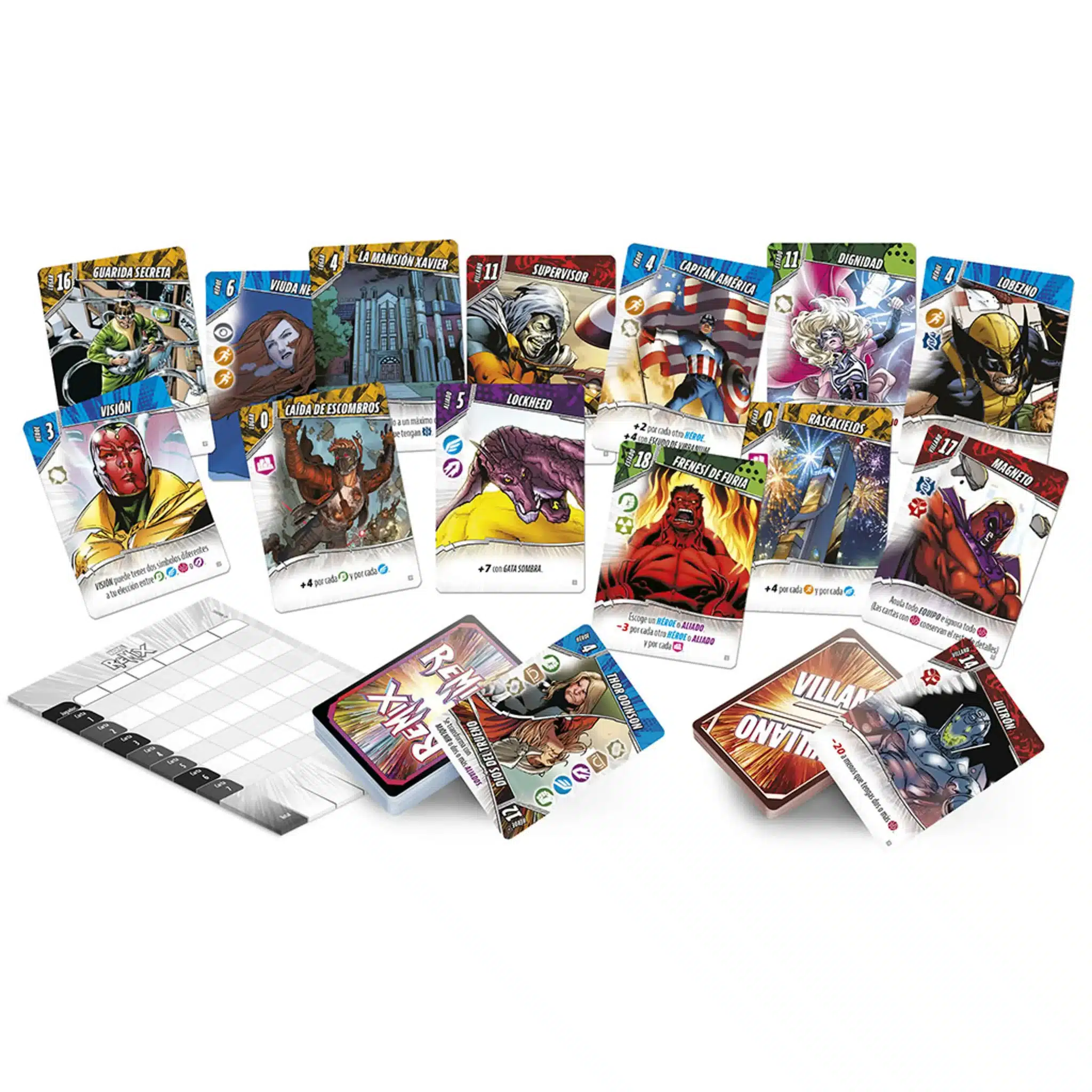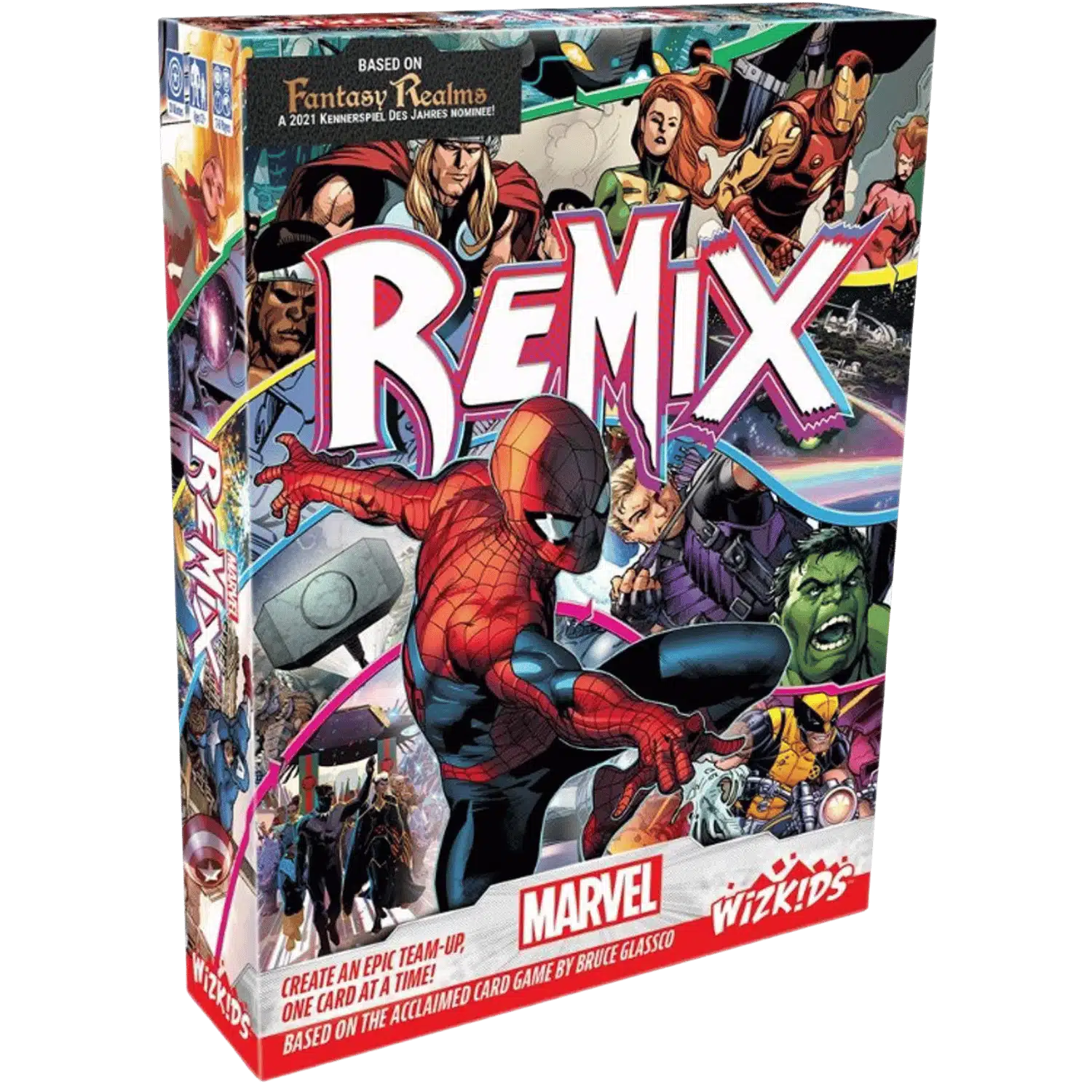 Marvel: Remix — это компактная карточная игра, основанная на механике, вдохновлённой популярной игрой Fantasy Realms от Брюса Гласско. Перед началом партии каждый получает семь карт, представляющих героев вселенной Marvel, их союзников, легендарные предметы или известные места. В свой ход игрок выбирает карту из одной из трёх доступных стопок — героев, злодеев или сброшенных карт — а затем сбрасывает одну из своих семи карт.