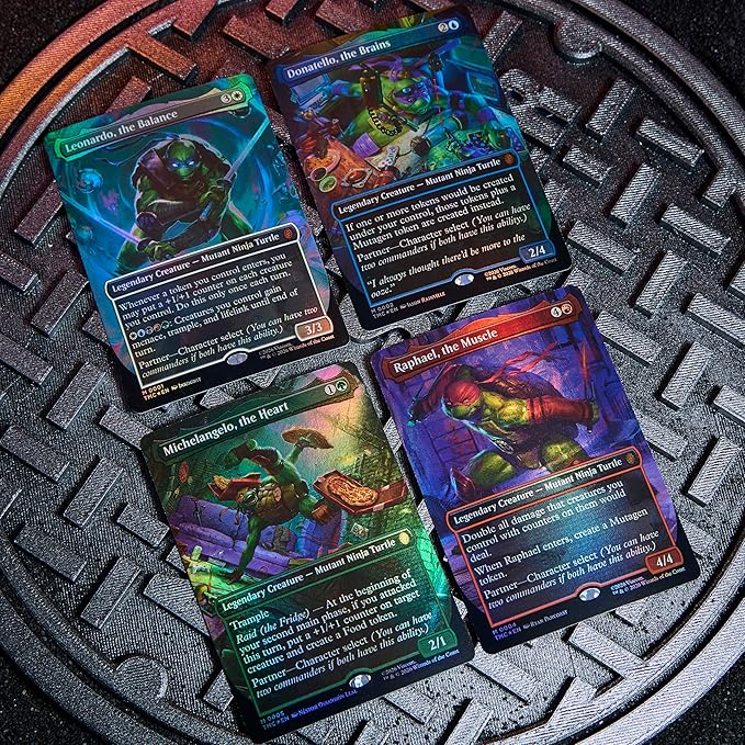 MTG: Teenage Mutant Ninja Turtles — Turtle Power! — это предсобранная колода формата Commander (EDH), полностью готовая к игре прямо из коробки. Она создана в рамках серии Universes Beyond и объединяет персонажей TMNT с классическим геймплеем Magic.