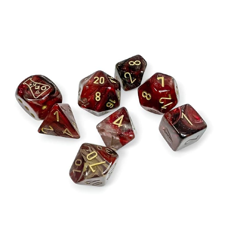 Кубики изготовлены из прочного пластика и имеют стандартный размер, подходящий для большинства настольных и ролевых игр. Набор поставляется в фирменной прозрачной пластиковой коробочке Chessex, удобной для хранения и переноски.