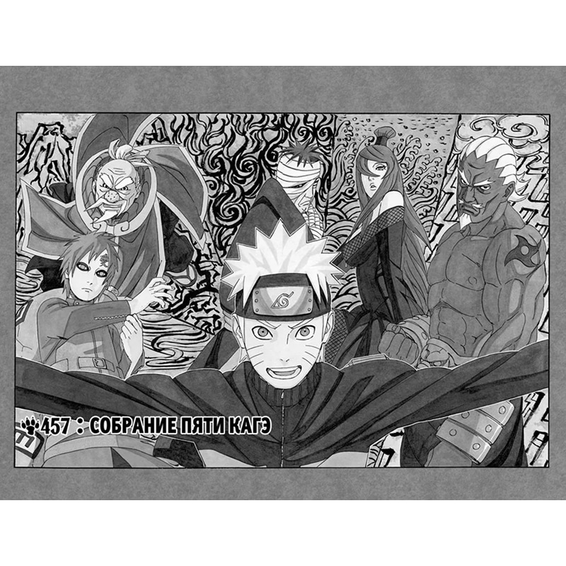 Семнадцатый том манги «Наруто» События манги переносят читателя в один из ключевых моментов истории «Наруто» — собрание пяти кагэ, где решается судьба мира шиноби. После того как Саскэ Учиха похищает Киллера Би, являющегося джинчурики, Райкагэ приходит в ярость и инициирует экстренную встречу лидеров пяти великих деревень.