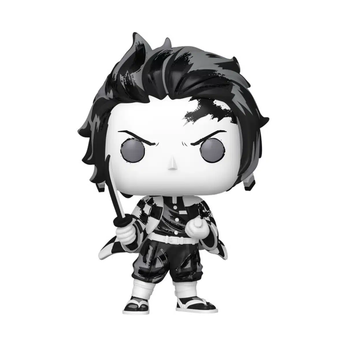 Тандзиро изображён с катаной в руке, в характерной форме охотника на демонов и хаори с узнаваемым узором. Его поза — собранная и готовая к бою, а выражение лица передаёт концентрацию и решимость. Контрастный чёрно-белый стиль подчёркивает линии и детали, делая фигурку визуально отличающейся от стандартных цветных POP-версий. Фигурка выполнена из винила и относится к стандартному формату POP!, но благодаря необычному художественному оформлению выглядит более коллекционной и выделяется в линейке Demon Slayer.