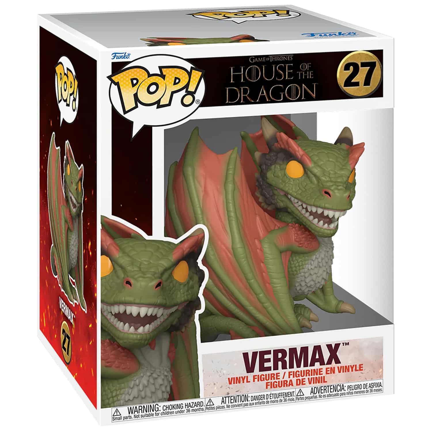 Funko POP! Vermax (№27) — коллекционная виниловая фигурка, посвящённая Вермаксу, одному из драконов из фантастического сериала House of the Dragon, приквела к Игре престолов. Эта версия фигурки относится к серии Pop! Super Sized — то есть она больше стандартных POP! (примерно 13–15 см в высоту), что делает её центром внимания в любой коллекции.