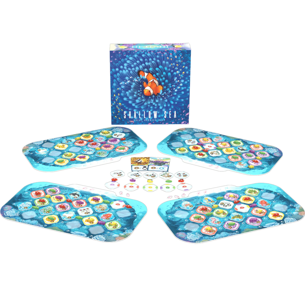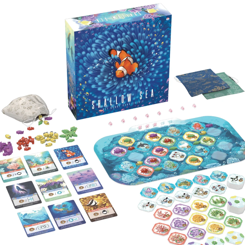 Shallow Sea — завораживающая настольная игра, в которой ты создаёшь живой подводный мир: выстраиваешь коралловые рифы, заселяешь их рыбами и стремишься создать самую красивую и сбалансированную экосистему океана.