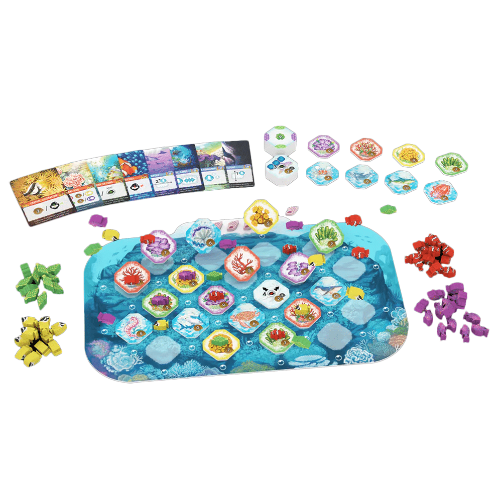 Каждая плитка, каждый жетон — это не просто элемент, а часть истории твоего рифа. Используй ракушки, чтобы заманивать редких существ, комбинируй цвета и формы, и наблюдай, как твой подводный мир оживает прямо на столе.
