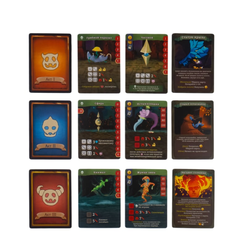 Партия делится на акты, в конце которых вас ждут боссы. Можно завершить игру после любого акта или продолжить дальше, усложняя себе задачу. Благодаря огромному количеству карт (600+), врагов и событий, каждая партия ощущается по-разному.