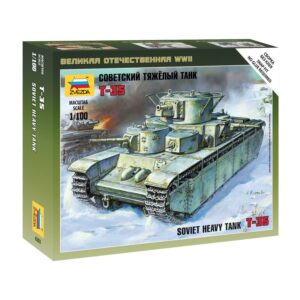 Модель воспроизводит все основные конструктивные особенности оригинального Т-35 – пятибашенную компоновку, противопульное бронирование и пушечно-пулеметное вооружение. Детали изготовлены из высококачественной пластмассы и требуют сборки с использованием специального клея «Звезда». Краска и клей для модели приобретаются отдельно.