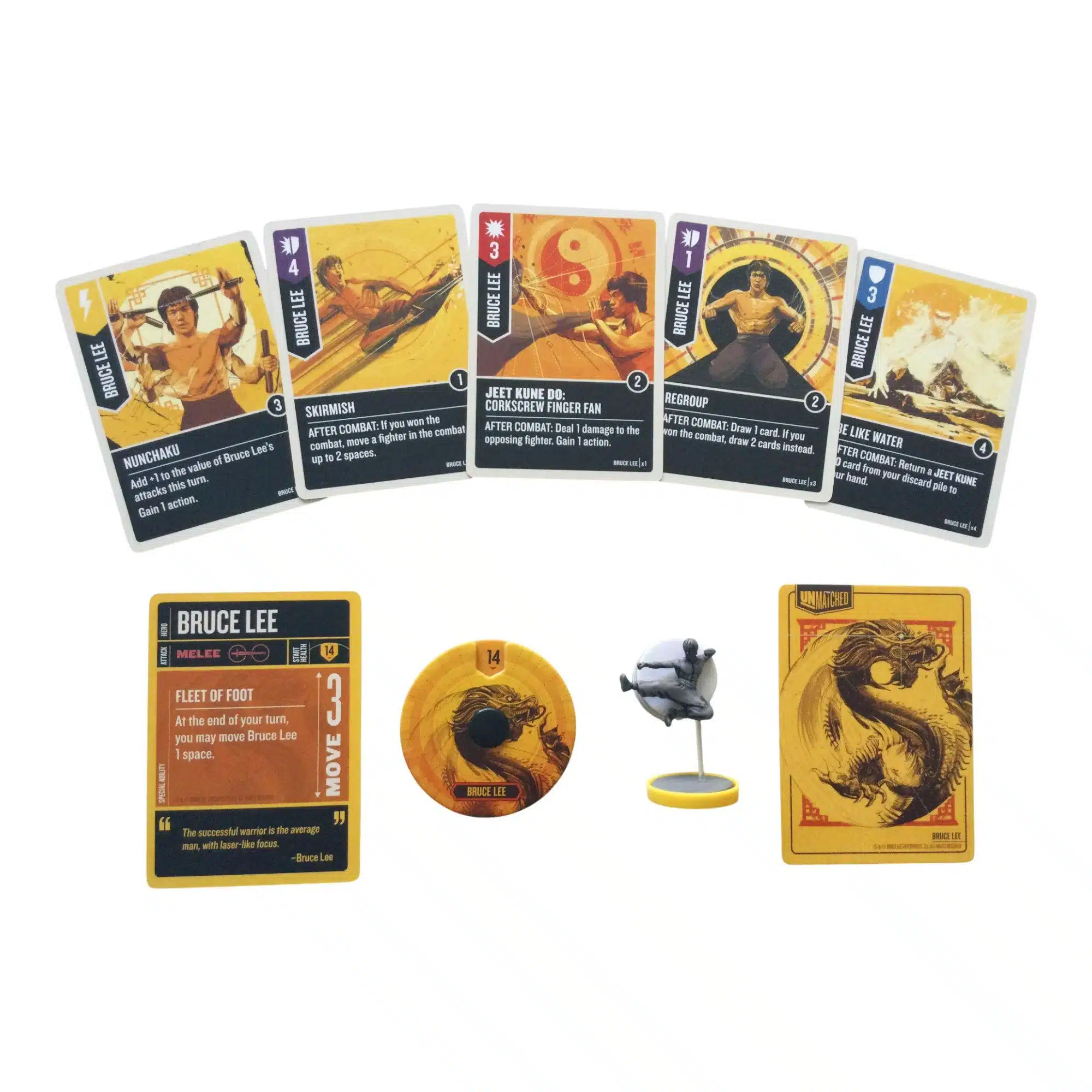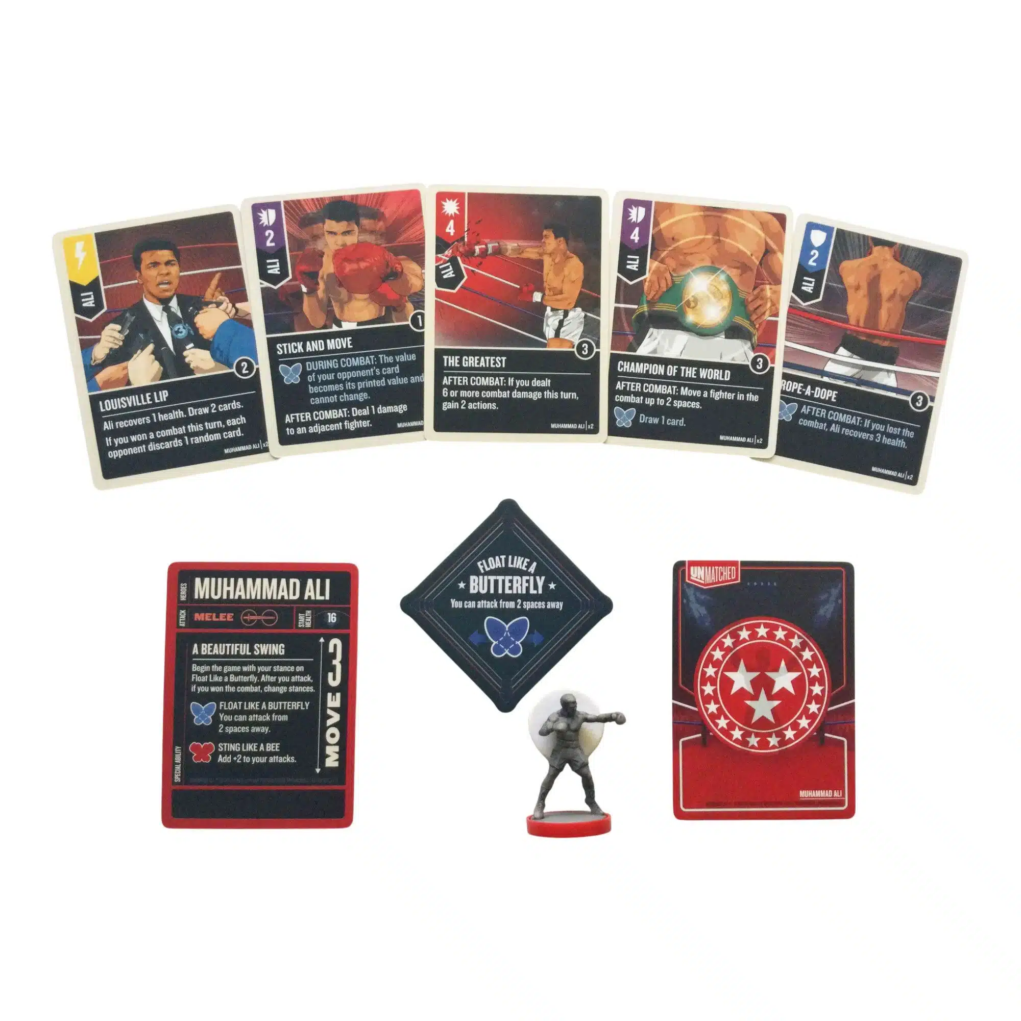 «Unmatched: Muhammad Ali vs Bruce Lee» — самостоятельный дуэльный набор серии Unmatched, в котором легендарный боксёр Muhammad Ali встречается в поединке с мастером боевых искусств Bruce Lee. Каждый герой обладает уникальной колодой и стилем боя, предлагая совершенно разные тактические подходы.