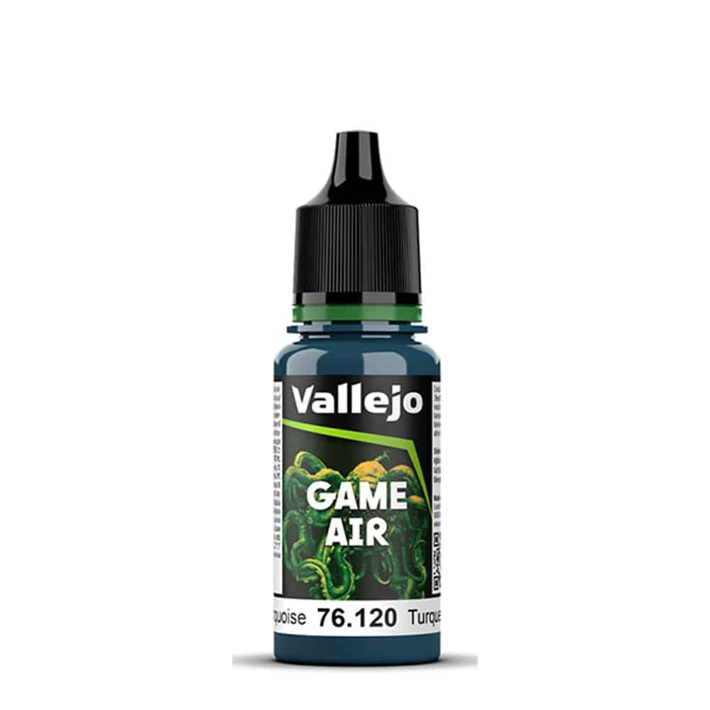 Vallejo Game Air Turquoise — акриловая краска из серии Game Air, предназначенная для аэрографа и миниатюр. Яркий бирюзовый оттенок отлично подходит для покраски тканей, доспехов, декоративных элементов и фантастических деталей на миниатюрах. Краска содержит мелкодисперсные пигменты, хорошо ложится на пластик, смолу и металл, быстро сохнет и образует ровное матовое покрытие. Флакон 18 мл оснащён удобной пипеткой-дозатором.
